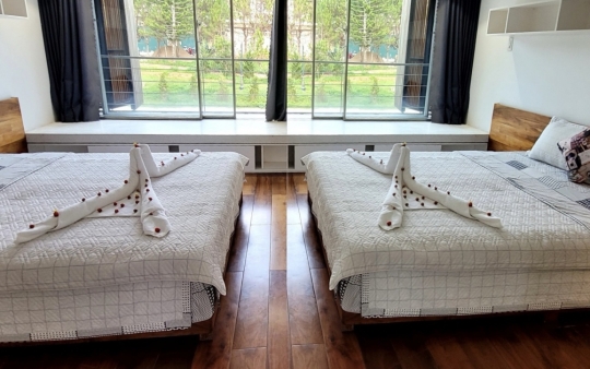 ⚜ Với thiết kế 4 phòng ngủ có 3 máy lạnh, phòng tắm có bồn tắm nằm, tổng 5 giường và 1 phòng sinh hoạt tập thể có thể ngủ thêm được 8 người.